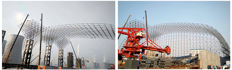网架由多根杆件按照一定的网格形式通过节点连结而成的空间结构。构成网架的基本单元有三角锥,三棱体,正方体,截头四角锥等,由这些基本单元可组合成平面形状的三边形,四边形,六边形,圆形或其他任何形体。[1] 具有空间受力、重量轻、刚度大、抗震性能好等优点;可用作体育馆、 影剧院、展览厅、候车厅、体育场看台雨篷、飞机库、双向大柱网架结构距车间等建筑的屋盖。缺点是汇交于节点上的杆件数量较多,制作安装较平面结构复杂。