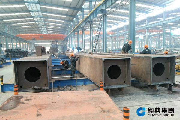 1.首先以上盖板作为组装基准,在其组装面上按施工图要求分别放出隔板及侧腹板装配线,并用样冲标志。