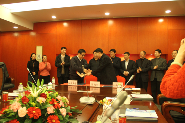 与山东建筑大学签署产学研合作协议、聘请周学军院长为技术顾问。