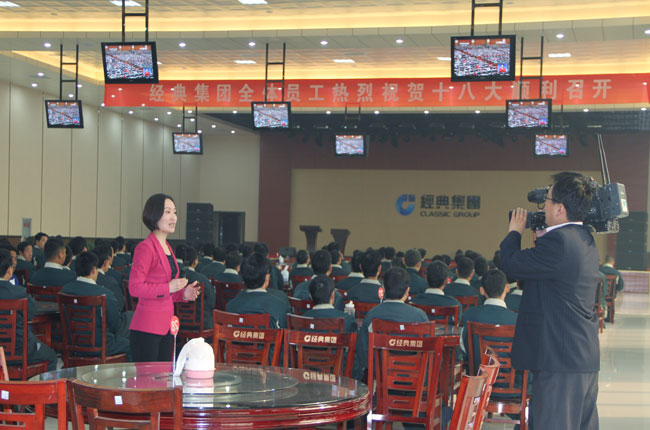 11月8日上午讯,举世瞩目的中国共产党第十八次全国代表大会在北京人民大会堂隆重开幕。为了及时学习领会“十八大”精神,lols12竞猜入口公司组织全体党员及职工准时收看大会开幕式盛况,第一时间聆听了胡锦涛同志代表党的十七届中央委员会所作的工作报告。兖州电视台记者现场采访拍摄。