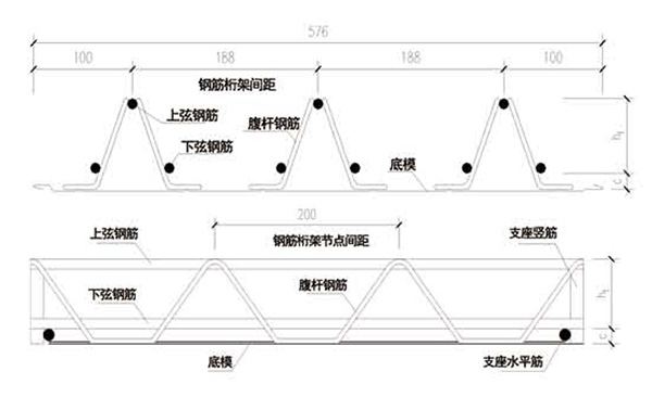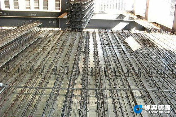 钢筋桁架楼承板是将楼板中钢筋在工厂加工成钢筋桁架,并将钢筋桁架与底模连接成一体的组合模板。施工阶段,能够承受混凝土自重及施工荷载;使用阶段,钢筋桁架与混凝土协同工作,承受使用荷载。该产品力学模型简单、直观,生产自动化程度高。钢筋桁架楼承板减少现场钢筋绑扎工作量70%左右,上下两层钢筋间距及混凝土保护层厚度能得到保证,钢筋排列均匀,为提高楼板施工质量创造了条件。当浇筑混凝土形成楼板后,具有现浇板整体刚度大、抗震性能好的优点。这种楼板与压型钢板组合楼板相比,综合经济效益好,减少了模板架设和拆卸AYX爱体育,大大提高了楼板施工效率。