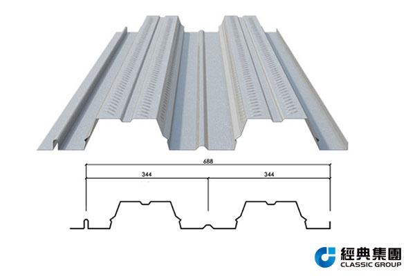 集团公司生产楼承板厚度:0.8mm、1.0mm、1.2mm。