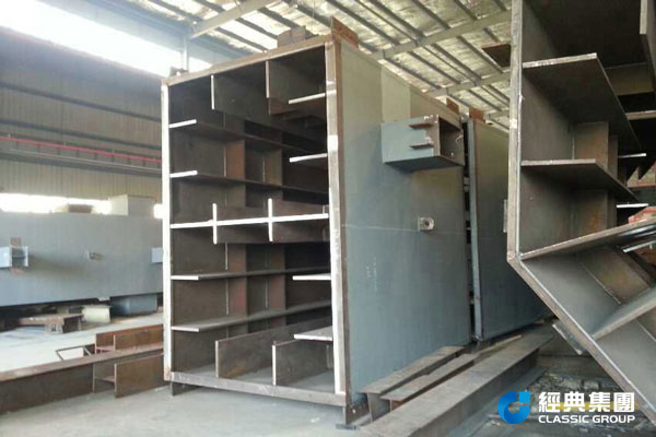 2.先组装上盖板与隔板,组装在胎模上进行,装配好后,须施焊完毕方可进行下道工序。