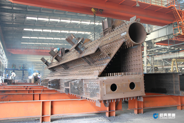 此构件为钢结构高层建筑构件,核心筒结构,钢骨,体积大,重量中,尺寸要求精度高,造型复杂。