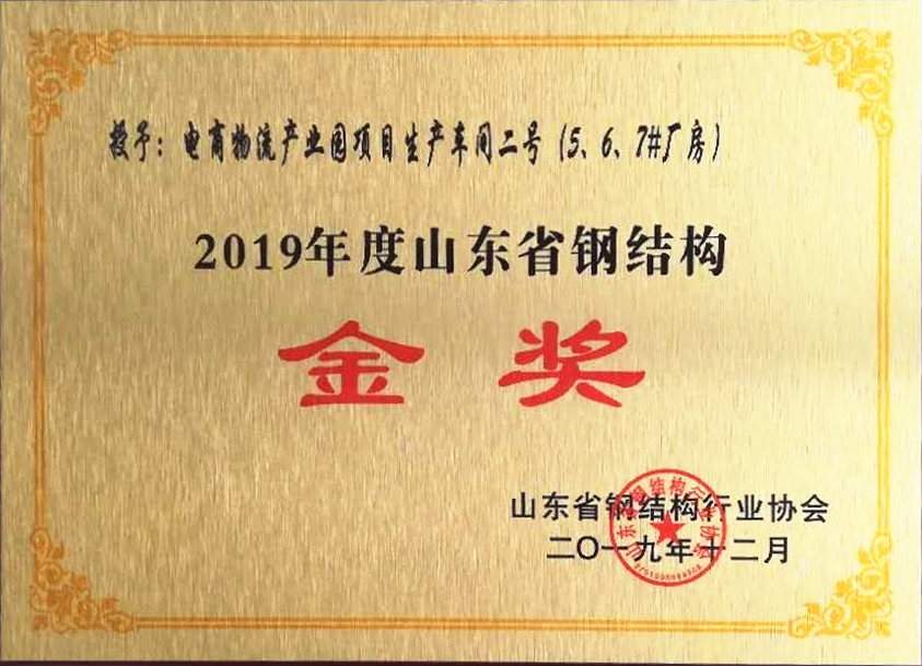 公司荣获山东省钢结构金奖、明星企业、优秀企业家、优秀项目经理等奖项。