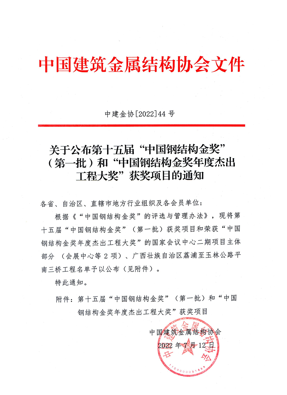 2021年5月,中国建筑金属结构协会通报2020年度建筑钢结构行业竞争力50强企业,公司位列17位;荣获2020年度中国建筑钢结构行业(5A)诚信企业。